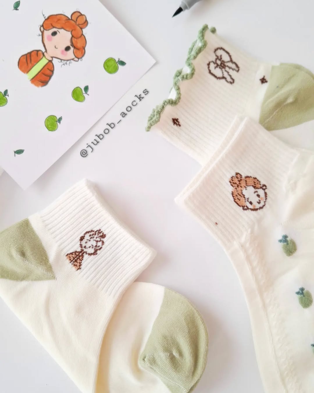 جوراب زنانه مچی مدل سیب سبز